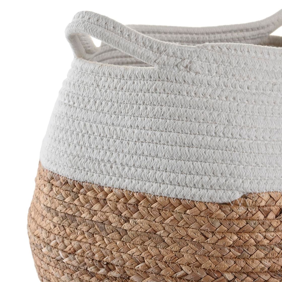 Elevate your storage game with this Fibre & Cotton Round Storage Basket, where practicality meets beauty. Each basket is a unique piece, reflecting the care and craftsmanship that goes into its creation. Add it to your home and enjoy a blend of style and utility that will last for years to come. Make your organizational needs a little more beautiful with this exquisite storage solution.