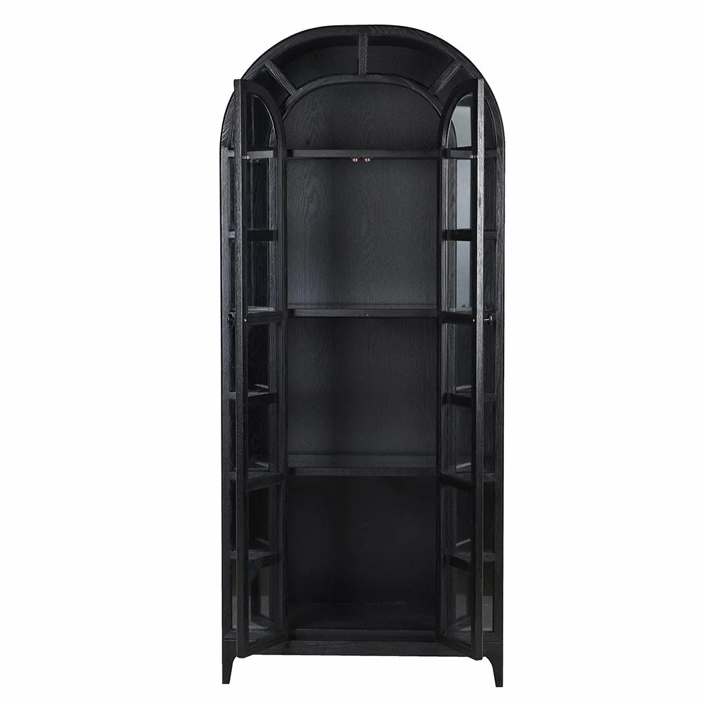 The Glass Kiburs Cabinet is equipped with three spacious adjustable shelves, providing ample storage and display space for your books, decorative pieces, or collectibles. Whether you prefer a minimalist look or a more curated display, the adjustable shelves make it easy to customize the layout according to your needs.