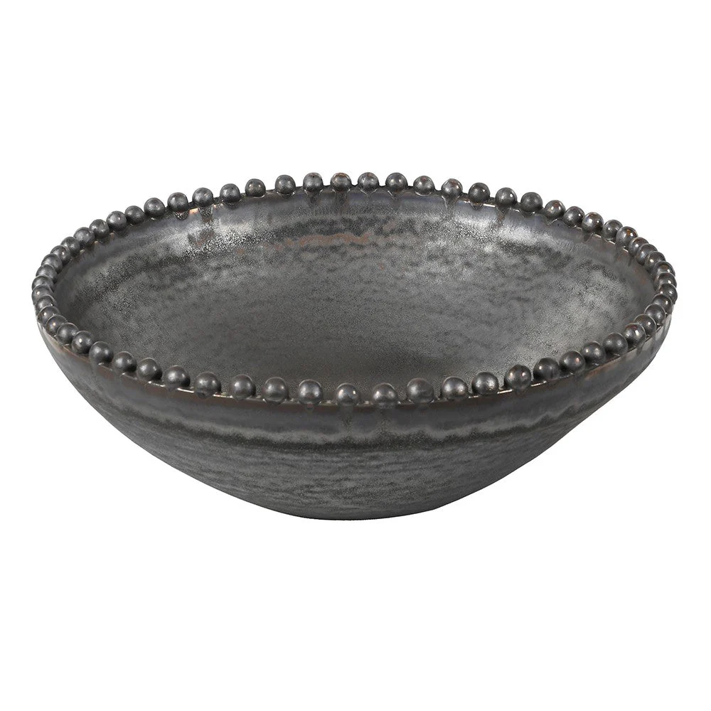 Metal Effect Beaded Bowl - Elegant Porcelain Decor
